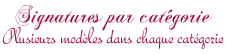 Tout le monde peut demander un prénom ou un court texte sur les modèles présentés, pas besoin de s’inscrire. Clic sur l'image pour aller dans la section choisie et voir les nouveautés déjà réalisées. Pour avoir une ou des signatures sur l'un des modèles